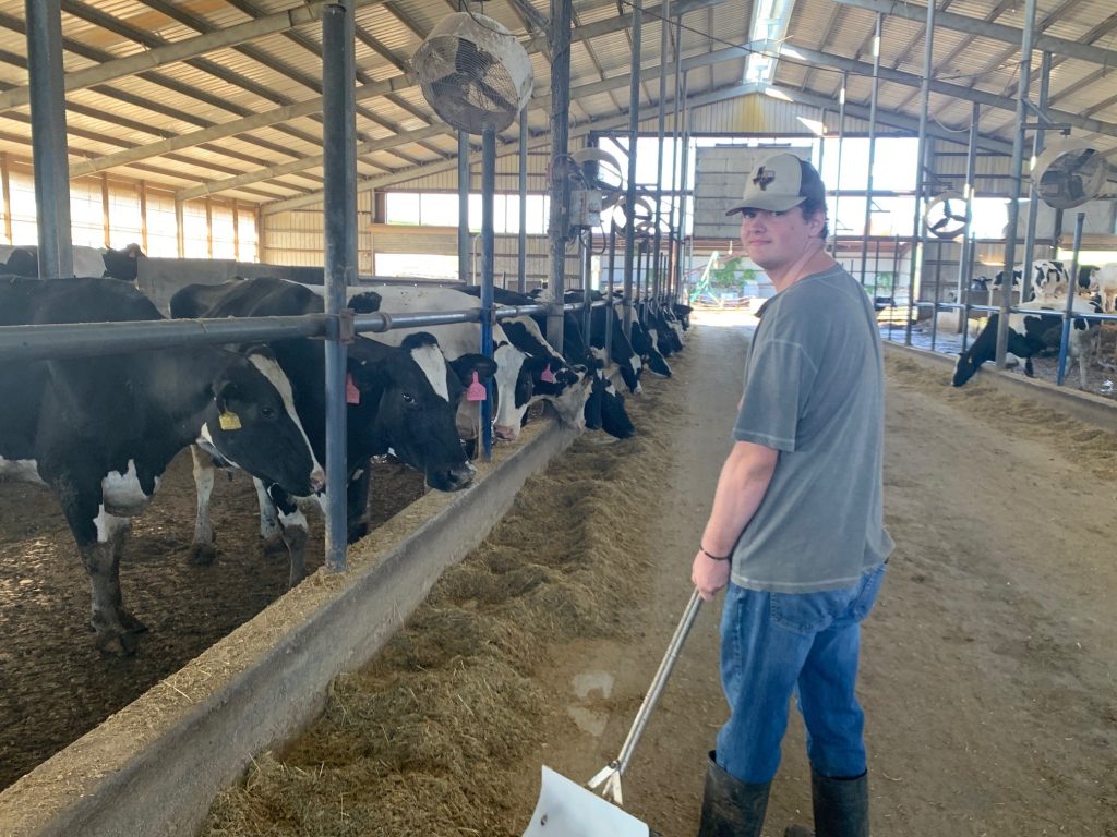 As Isaac volunteered, he got to know Sarah Torres, a fourth generation dairy farmer and owner of Cresthaven Farms, a 160-cow Dairy Farm in Grayson County. “Isaac started by helping in the milking parlor, and I really enjoyed having him here,” she says.